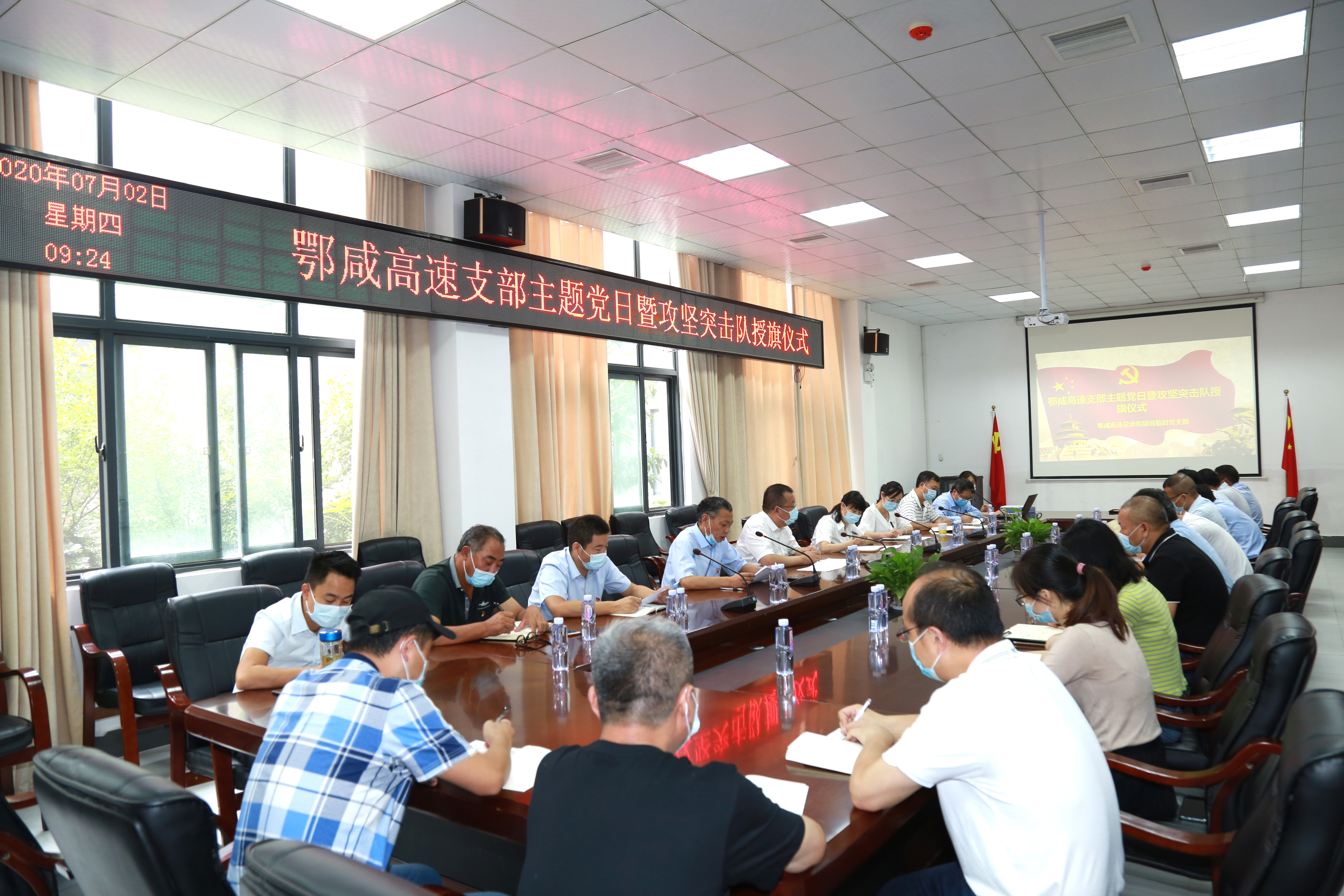 7月2日上午,湖北路桥鄂咸项目临时党支部组织开展庆“七一”主题党日活动暨攻坚突击队授旗仪式,隆重庆祝建党99周年,动员项目全体党员干部进一步凝心聚力、锐意进取、积极投身到鄂咸项目建设之中。项目临时党支部32名党员在主会场参加,各攻坚突击队非党员队员通过视频形式参加会议。