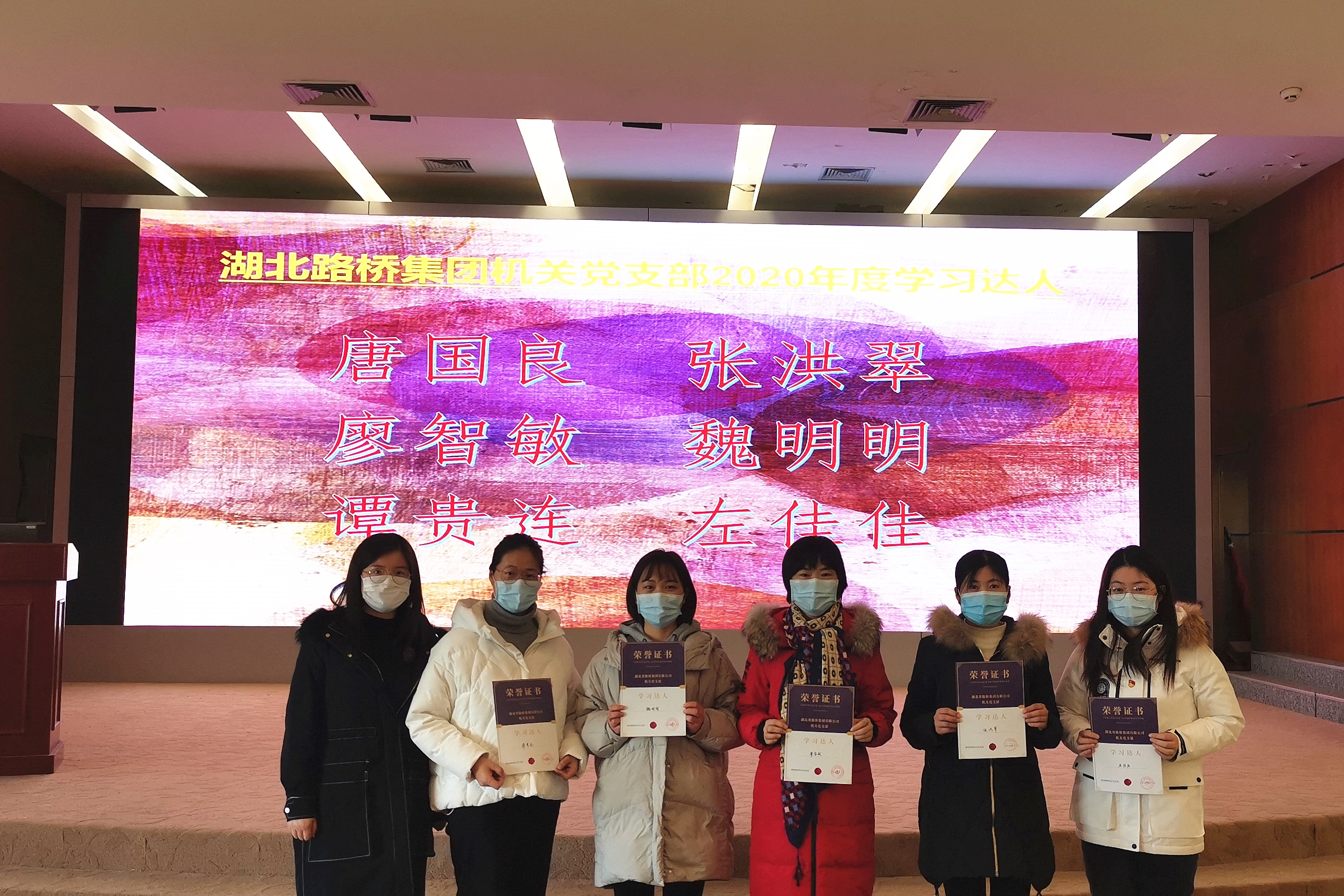党员代表陈倩同志宣读了支部优秀表彰文件,授予张婷等6位同志“优秀下沉人员”称号,授予唐国良等6位同志“学习达人”称号,授予机关工程部、信息中心、审计部、党群部、综合部“最美办公室”称号。与会党员代表为获得表彰的集体和个人颁发证书。