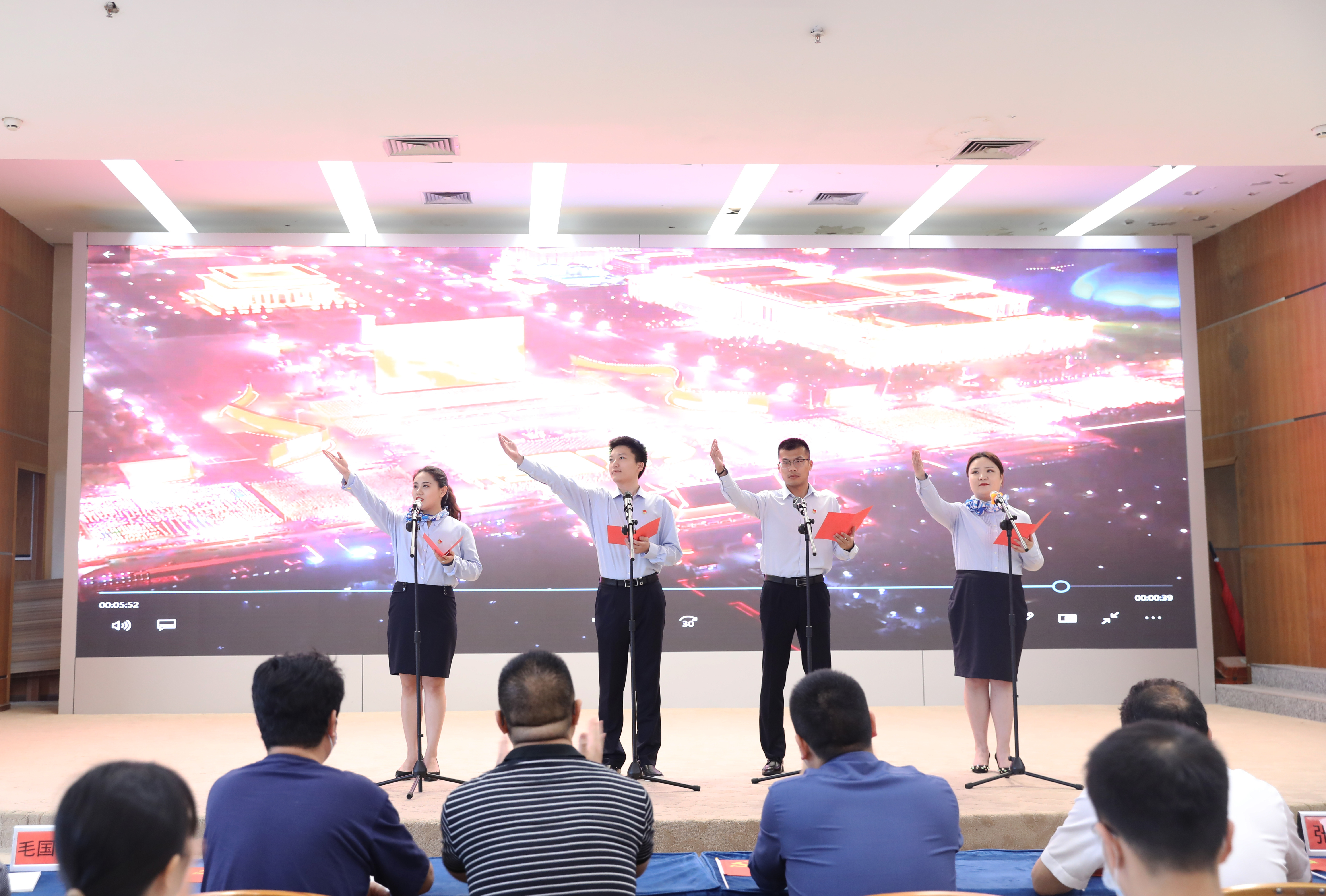 图:与会人员重温入党誓词