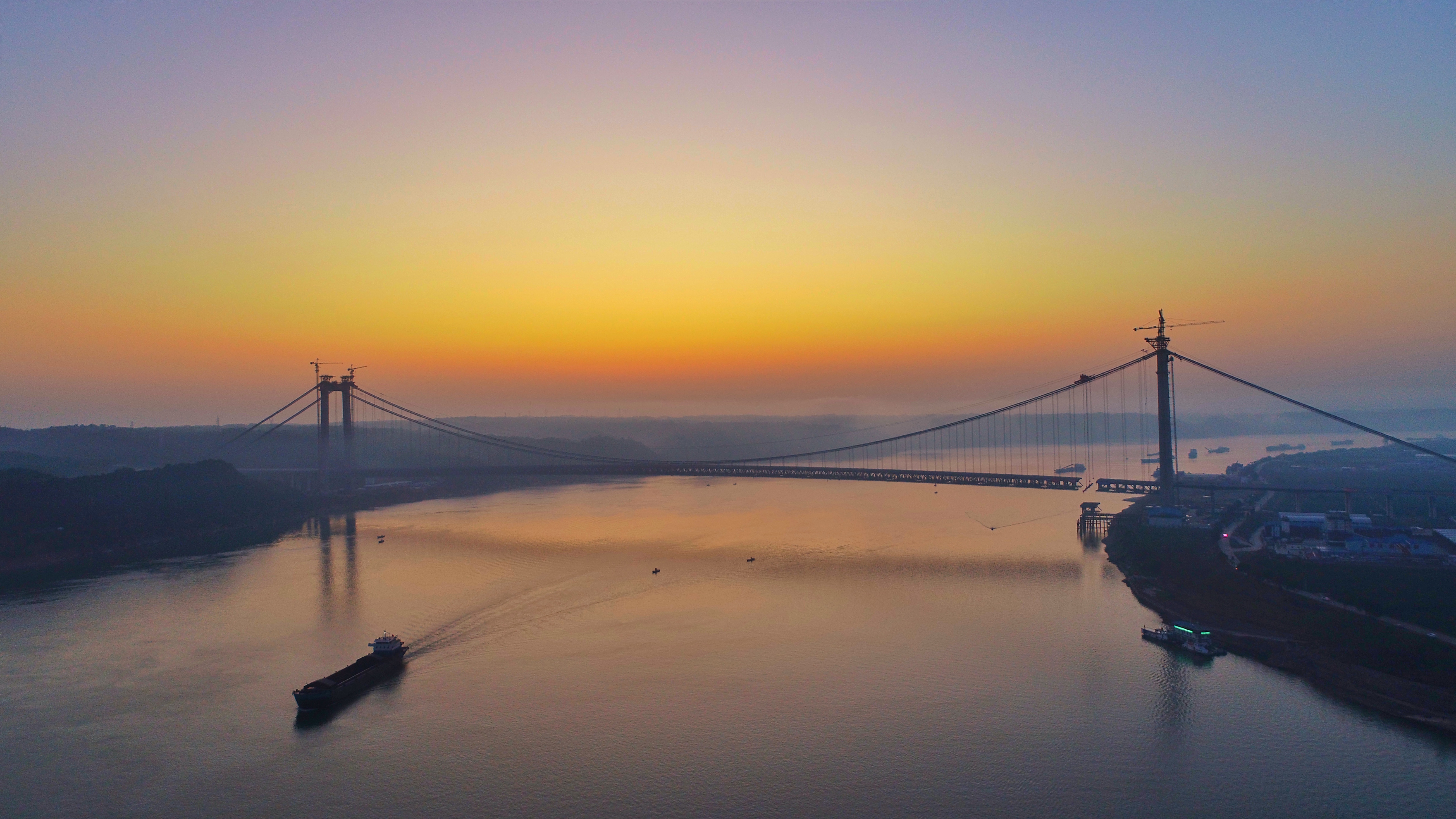 宜都长江大桥,又称“宜都长江公路大桥”,是位于中国湖北省宜昌市的一座公路双塔单跨钢桁梁悬索桥,跨越长江,连接北岸枝江市白洋镇和南岸宜都市陆城街道,是呼北高速公路宜昌至张家界段的控制性工程,也是湖北省“753”骨架公路网中规划“纵6”的重要组成部分。大桥北接保康至宜昌高速公路,南连宜昌至张家界高速公路湖南段。大桥全长2,670.5米,按双向六车道高速公路标准建设,设计行车速度100公里/小时,宜都长江大桥为主跨1000m的单跨悬索桥,主缆边跨跨度分别为276m和296.5m。全桥设两根主缆,横向间距为36m,吊索与主缆在一个竖直平面内。大桥项目分两个不同的标段,项目估算总投资约37.33亿元人民币,计划建设工期为48个月。湖北路桥集团有限公司承建BY-2标的建设,2020年4月29月,大桥实现全线贯通。
