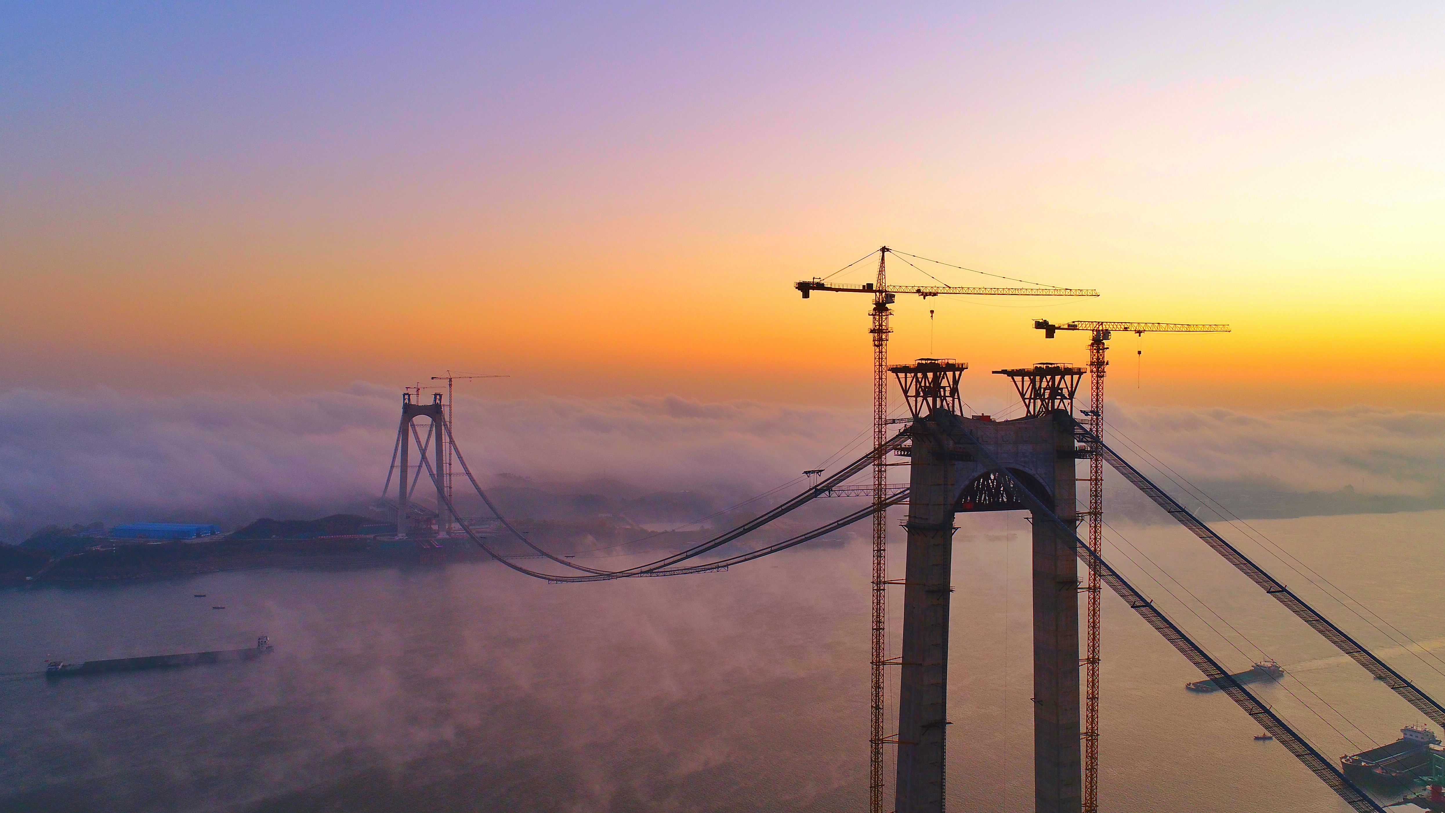 黄石棋盘洲长江公路大桥是武汉城市圈高速公路的重要组成部分,该项目起点位于阳新县太子镇樟树湾村,顺接拟建的黄咸高速公路大冶至阳新段,穿过规划棋盘洲港区后跨越长江进入黄冈市蕲春县境内,在韩家湾与G50沪渝高速全互通相交,终点接沪渝高速。路线全长22.237km,黄石侧接线14.247km,长江大桥3.728km,黄冈侧接线4.262km。本项目投资估算总金额为39.363亿元,建设总工期为48个月。2014年10月,湖北路桥中标棋盘洲长公路大桥建设工程项目,2020年6月5日,大桥实现顺利合龙。