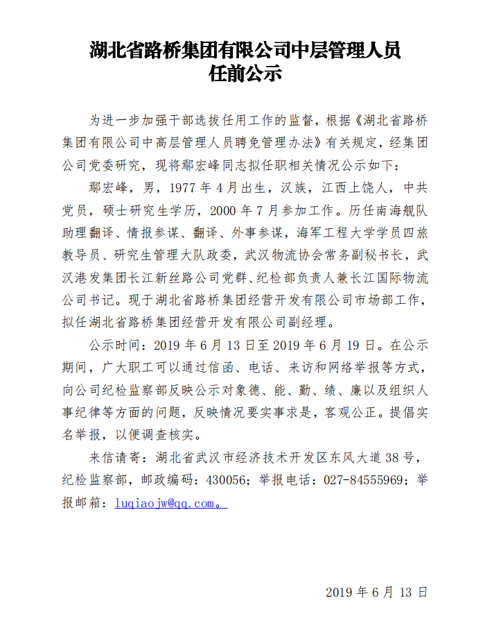 关于湖北省路桥集团2019年转聘考试笔试成绩公布的通知