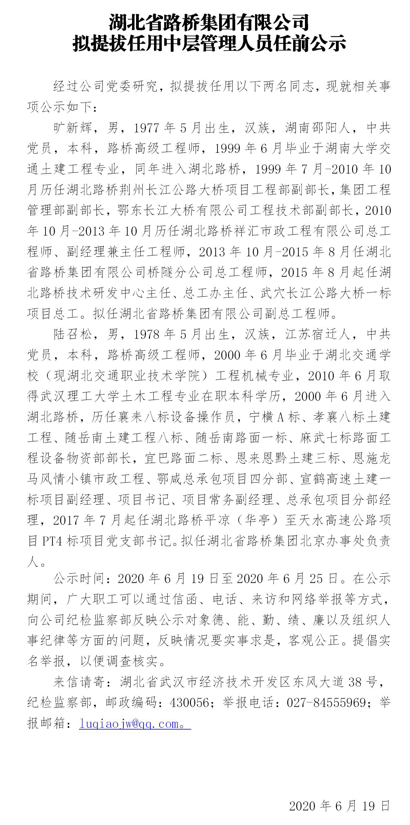 乐鱼官方网站拟提拔任用中层管理人员任前公示