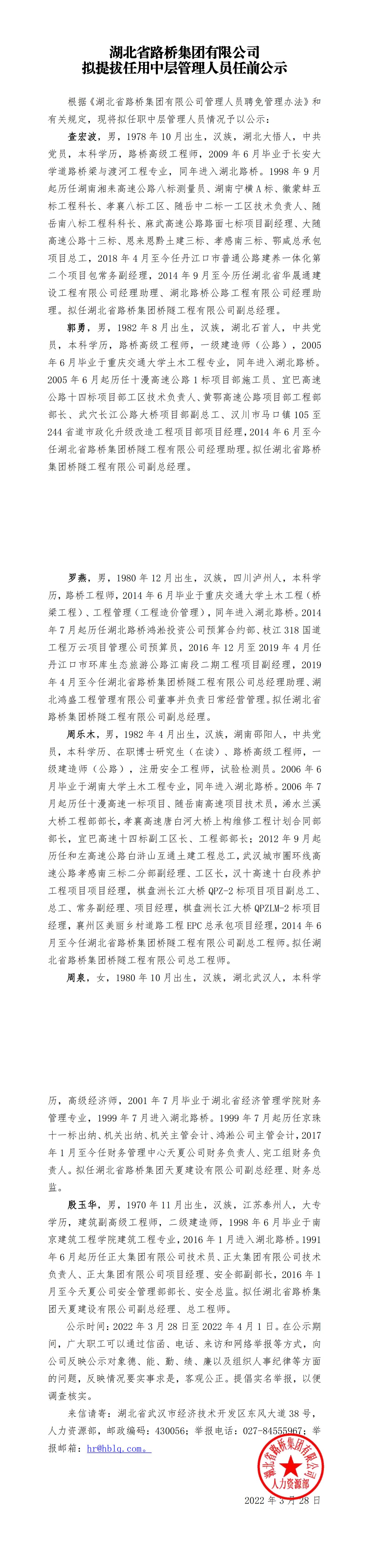 乐鱼官方网站拟提拔任用中层管理人员任前公示