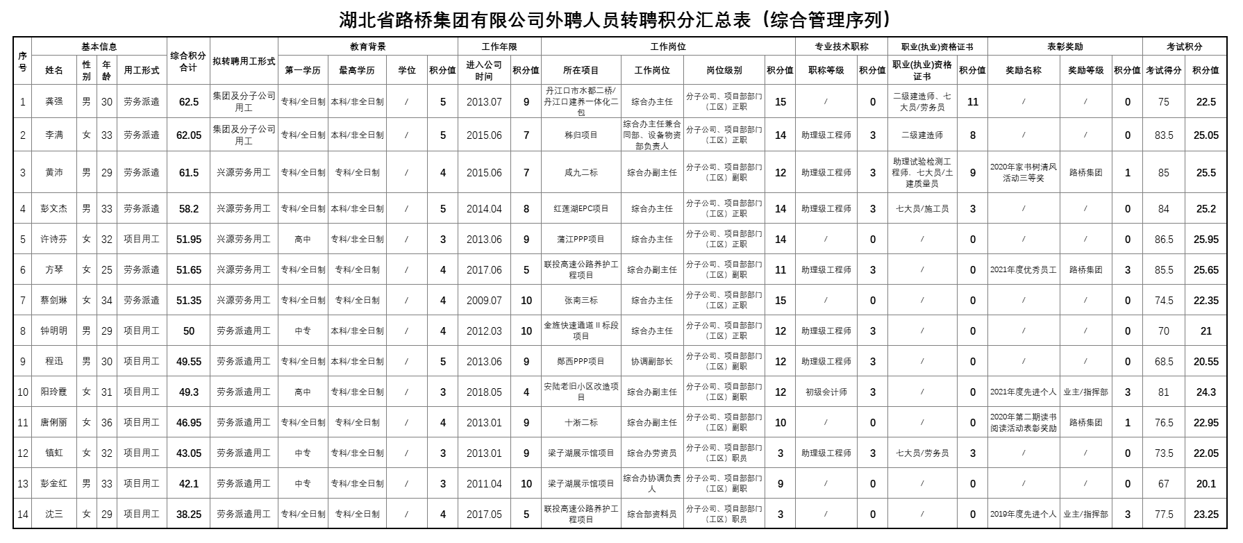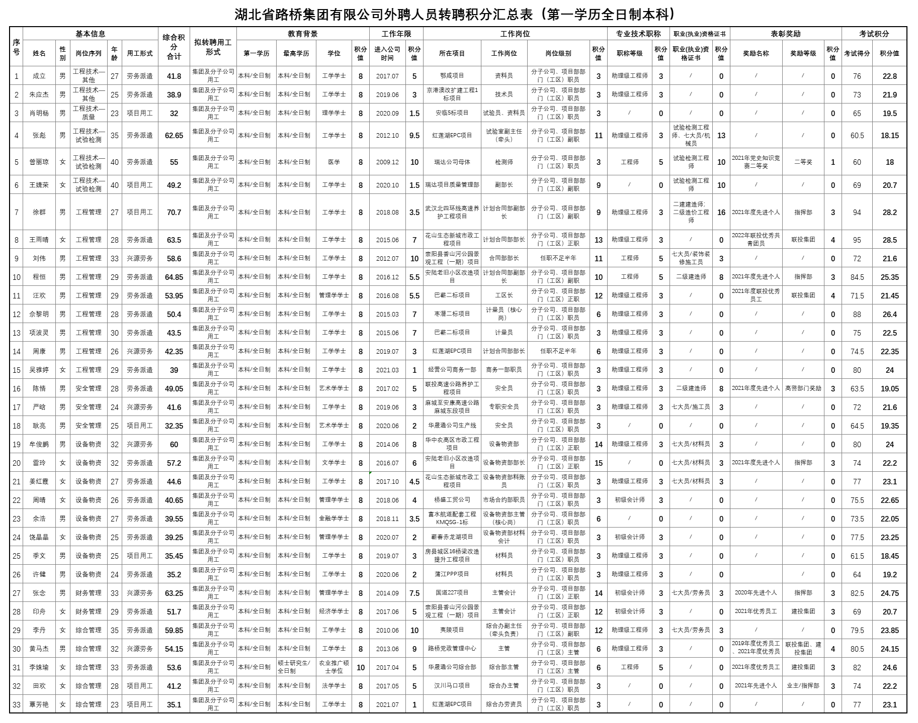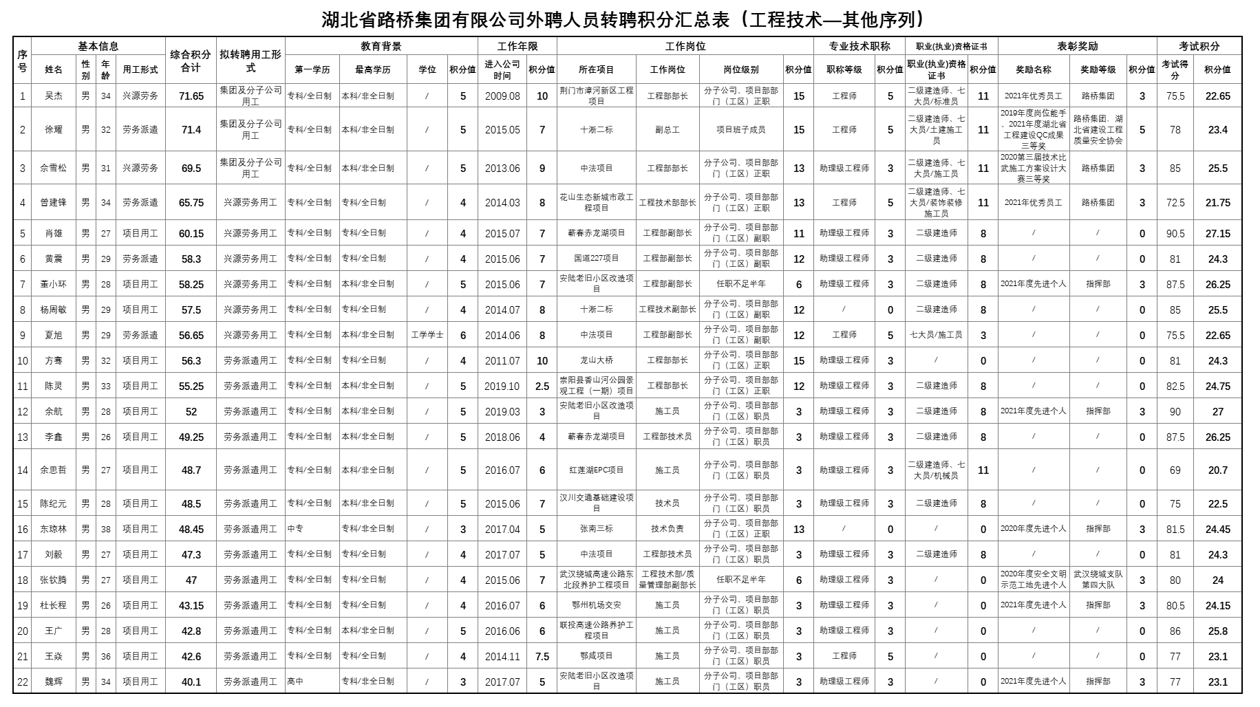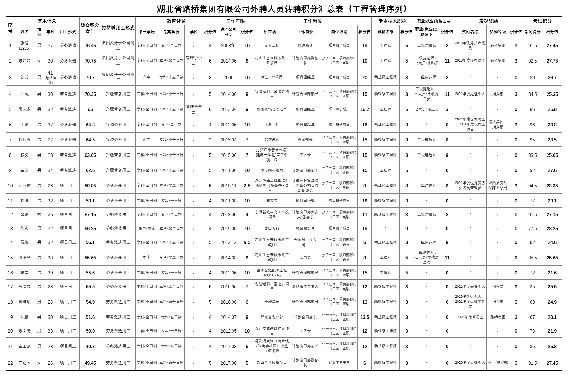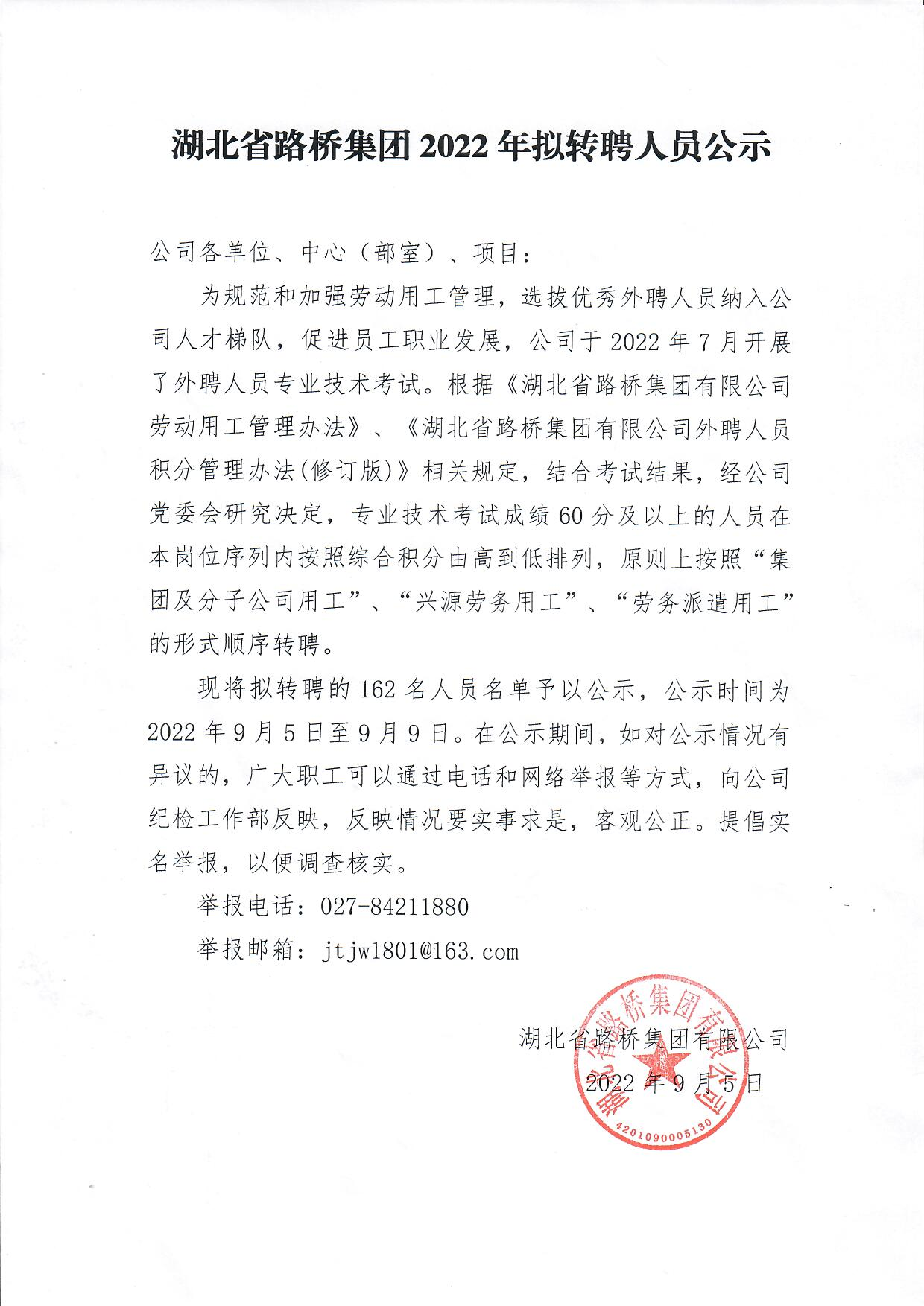 关于2022年湖北省路桥集团外聘人员专业技术考试成绩公布的通知