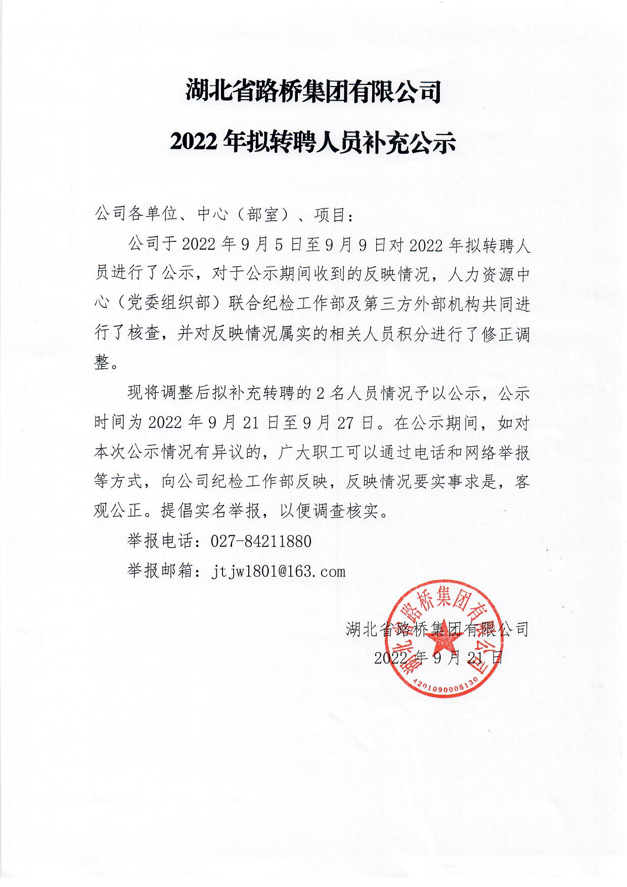 乐鱼官方网站2022年拟转聘人员补充公示
