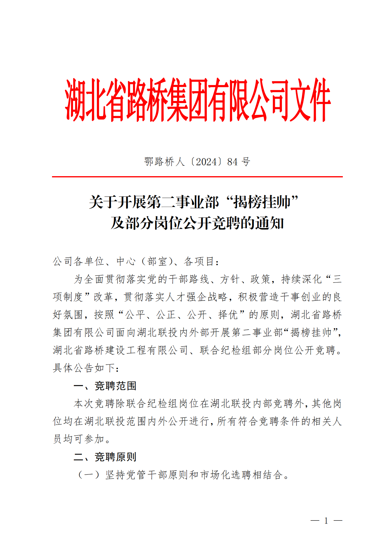 关于开展第二事业部“揭榜挂帅” 及部分岗位公开竞聘的通知