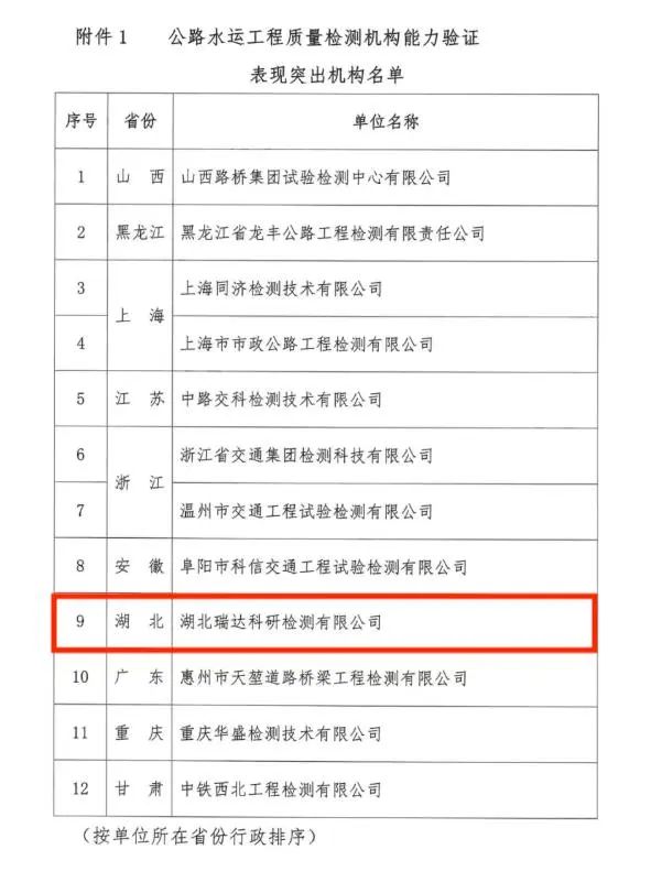 1月9日,中国交通建设监理协会发布表彰通知,瑞达科研检测公司成功蝉联第二届公路水运工程质量检测能力验证“表现突出机构” 荣誉,是全省唯一一家连续两届获此荣誉的检测机构。