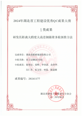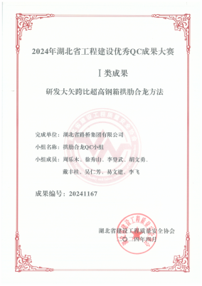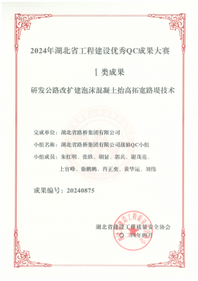 湖北路桥将持续激励全员开展核心技术攻关、加强质量管理创新、推广质量管理经验,为解决施工一线实际问题、创造经济社会效益、提升公司改革创新能力及质量管理水平提供坚实的技术支撑。