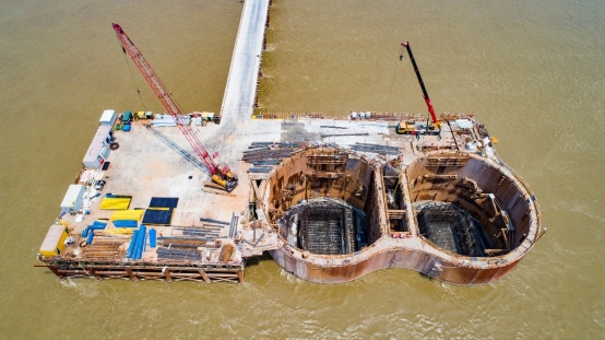 双壁钢围堰是深水基础施工常用的围堰形式,具有刚度大、作业空间大等特点,能够适用更大的水深。围堰的尺寸及高度应根据基础尺寸及放样误差、墩位处河床标高、围堰下沉深度和施工期间可能出现的最高水位高程以及浪高等因素确定,需进行专门设计,确保其强度、刚度及稳定性满足要求。