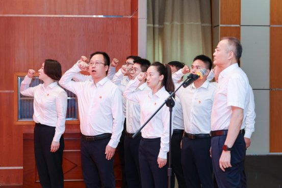 潘新平对受表彰的先进集体和个人表示祝贺,对党的“新鲜血液”的加入表示欢迎。他结合自身理论学习感悟,作了题为《强化党纪意识 严守“六大纪律” 为推进高质量发展提供坚强纪律保障》的党纪学习教育专题党课。