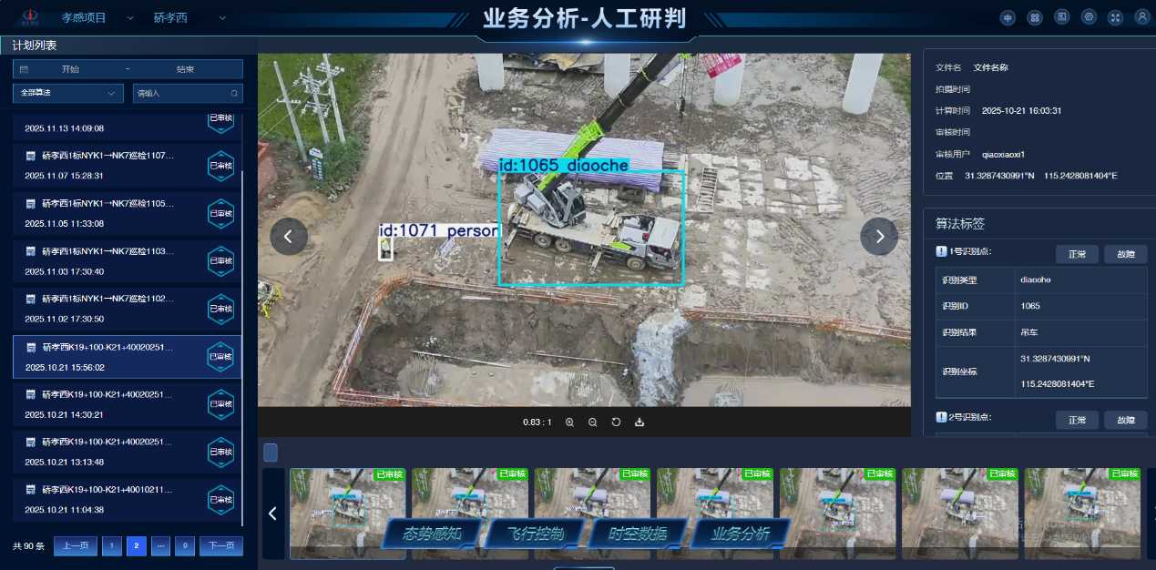 在中国公路学会“2025公路工程建设项目管理创新赛”中,湖北路桥、公路公司“基于‘无人机+’的公路工程智能动态安全创新管理系统”获二等奖。该系统依托硚孝西项目“数智硚孝”品牌建设,作为“BIM质量协同+无人机+安全管控”双轮驱动的关键一环,有效破解公路工程“点多、线长、面广”的安全管控难题。