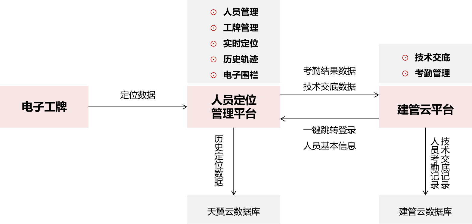 平台接入联投集团建管云,通过“北斗定位+双平台协同(人员定位管理平台+建管云平台)”的模式落地,构建“终端采集-平台处理-多端协同”全流程体系,实现考勤自动化、定位精准化、交底数字化、管理可视化。