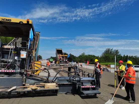 7月4日,湖北路桥赤壁长江大桥东延段项目二期路面底基层、基层试验段顺利完成摊铺,标志着赤壁东项目正式开启路面工程新篇章,为实现工程建设目标奠定坚实的基础。