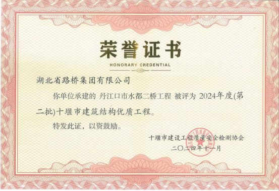 近日,十堰市建设质量安全检测协会公布2024年度(第二批)“十堰市建筑结构优质工程”和“建筑工程安全文明施工现场”获奖名单,湖北路桥承建的丹江口市水都二桥工程荣登榜单,喜获“质安”双奖。