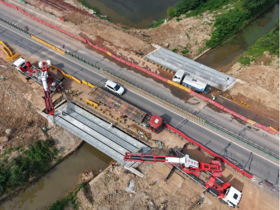 5月30日16时,随着最后一片空心板稳稳架设在玛瑙嘴桥上,标志着“纵二”G106鄂州泽林至碧石段改扩建工程项目桥梁梁板吊装任务顺利完成。